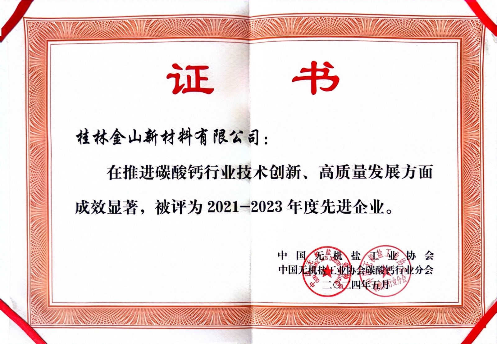 年會(huì)頒布了2024年全國(guó)碳酸鈣系列10強(qiáng)企業(yè)名單,我公司憑借卓越、突出的成績(jī),再次被評(píng)選為“中國(guó)碳酸鈣行業(yè)輕鈣第一強(qiáng)”、“中國(guó)碳酸鈣行業(yè)納米鈣第三強(qiáng)”、“2021—2023年度先進(jìn)企業(yè)”三大獎(jiǎng)項(xiàng)。